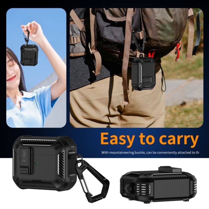 Das Tech-Protect Carbonox Etui ist die ideale Lösung für Nutzer, die vollständigen Schutz und eleganten Stil schätzen. Dieses robuste, gepanzerte Etui besteht aus hochwertigen TPU- und PC-Materialien, die maximalen Schutz vor Stößen, Kratzern und Fingerabdrücken bieten. Der innovative Verschluss mit sicherem Knopf gewährleistet ein einfaches Öffnen und Schließen des Deckels und schützt die Kopfhörer in jeder Situation.