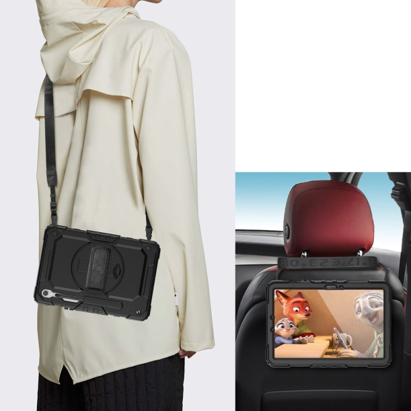 Die Hülle ist perfekt angepasst, verfügt über eine integrierte Polycarbonatscheibe mit einer Härte von 4H und Dichtungen, die die am stärksten gefährdeten Stellen vor Staub, Sand und Wasser schützen. Der Hersteller hat auch an einen praktischen Standfuß, einen Griff und eine Schlaufe gedacht.