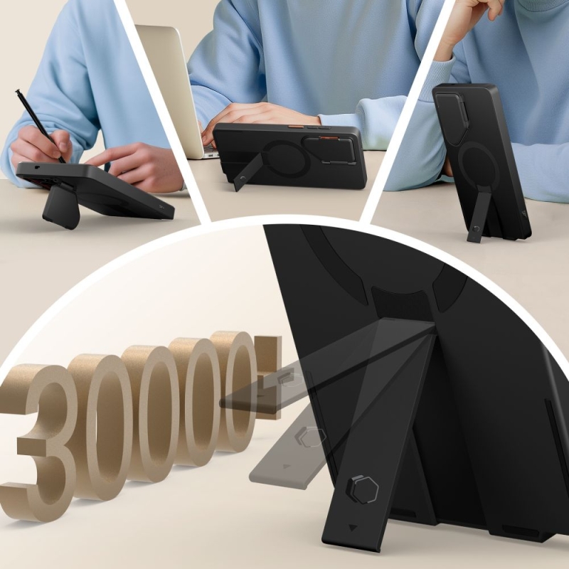 Die integrierte Ständerfunktion ist eine praktische Lösung für Personen, die Filme schauen, Videogespräche führen oder mobil arbeiten – der klappbare Ständer ermöglicht es, das Telefon sowohl im Hoch- als auch im Querformat aufzustellen.