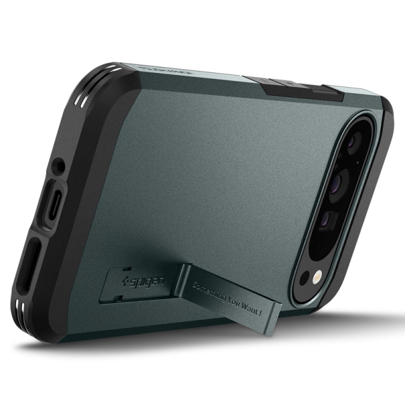 Die Hülle aus der Serie Tough Armor von Spigen ist eine neue Schutzhülle des Unternehmens. Ihre zweigeteilte Konstruktion besteht aus einem abriebfesten thermoplastischen Material und einem verstärkenden Polycarbonat-Rahmen. Im Inneren der Hülle befindet sich eine Füllung aus technologischer Schaumstoff, die eine zusätzliche Schutzschicht gegen Stöße oder Stürze des Geräts bietet.