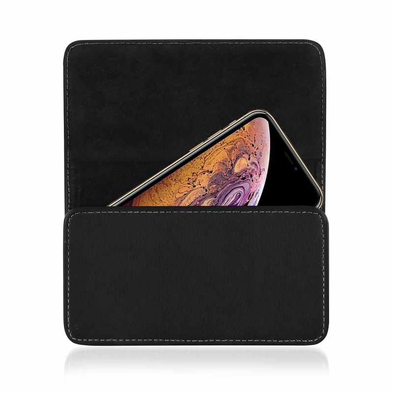 Elegante, horizontale Tasche für den Gürtel, aus Kunstleder gefertigt, mit nach oben öffnendem Klappdeckel.