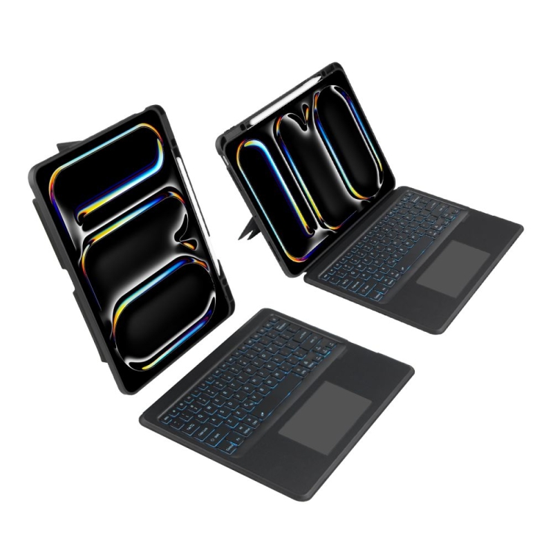 Zum Etui gehört eine kabellose Bluetooth-Tastatur mit beleuchteten Tasten. Sie zeichnet sich durch eine lange Batterielebensdauer aus, die bis zu 80 Stunden ununterbrochene Nutzung ermöglicht. Mit dieser Lösung verwandelt das Tech-Protect SCMag Pen Etui das Tablet in ein vollwertiges Arbeitswerkzeug und ermöglicht komfortables Schreiben.