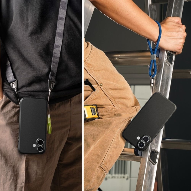 Das Etui der Onyx Magnetic Magsafe-Serie von Ringke besteht aus weichem und strapazierfähigem thermoplastischem Material, das an den Kanten verstärkt ist, um das Gerät bestmöglich zu schützen. Die leicht erhöhte Form der Hülle um die Kamera und den Bildschirm schützt vor Kratzern, indem sie das Telefon knapp über der flachen Oberfläche anhebt. Es verfügt über Tastenabdeckungen, Aussparungen für Anschlüsse und einen Anhänger.