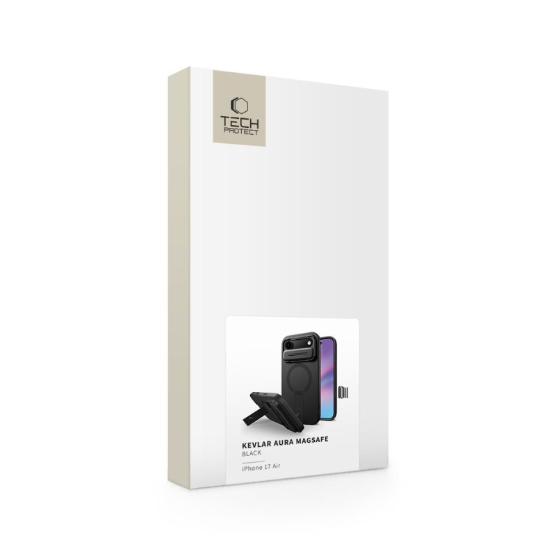 Die Kevlar Aura MagSafe-Hülle von Tech-Protect bietet soliden Schutz für das Smartphone in modernem Design. Hergestellt aus strapazierfähigem Material, bietet sie hohe Widerstandsfähigkeit gegen Kratzer, Stöße und Stürze und behält dabei ein schlankes Profil und elegantes Aussehen.