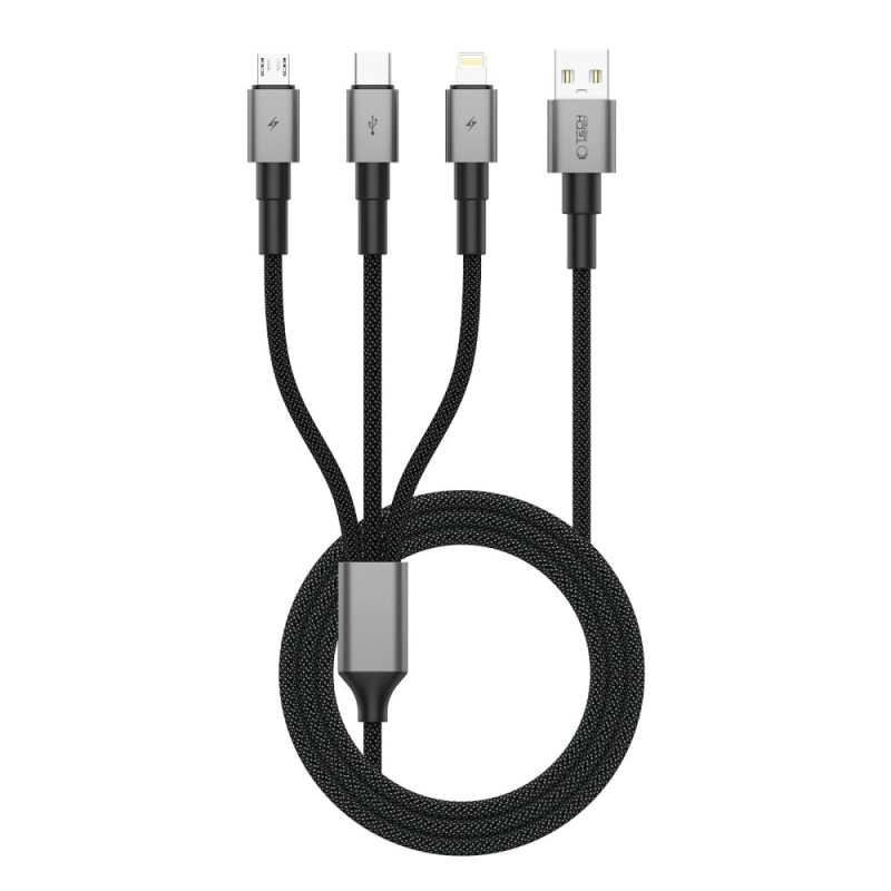Das funktionale Kabel Tech-Protect UltraBoost DNA ist eine praktische 3-in-1-Lösung, ausgestattet mit USB-C-, Micro-USB- und Lightning-Anschlüssen, die ein schnelles und sicheres Laden mehrerer Geräte gleichzeitig ermöglichen – mit einer maximalen Leistung von bis zu 15W (3A).