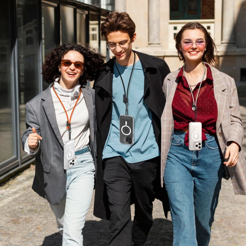 Ausgestattet mit einem Adapter, der auf der Innenseite der Hülle platziert wird, ermöglicht er ein sicheres und bequemes Tragen des Handys. Dank der verstellbaren Schnurlänge können wir das Handy über die Schulter hängen oder in der Hand tragen und die Nutzung an unsere Bedürfnisse anpassen.