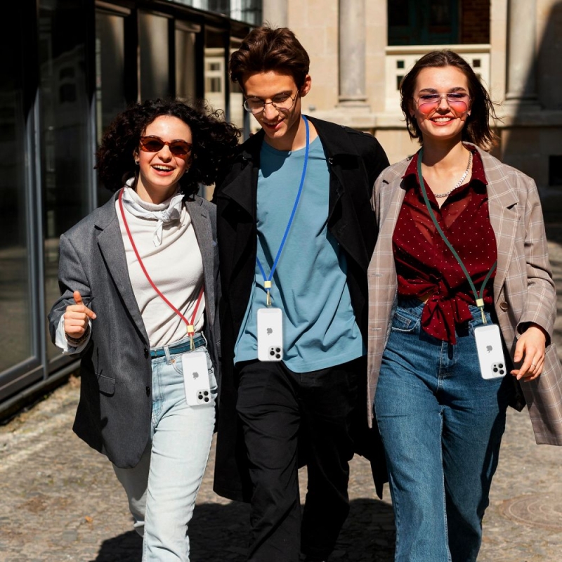 Ausgestattet mit einem Adapter, den wir auf der Innenseite der Hülle platzieren, ermöglicht er ein sicheres und bequemes Tragen des Telefons. Dank der verstellbaren Schnurlänge können wir das Telefon über die Schulter hängen oder in der Hand tragen und die Nutzung an unsere Bedürfnisse anpassen.