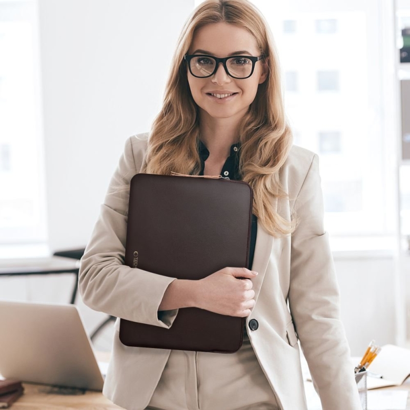 Das Sleeve-Modell zeichnet sich durch ein minimalistisches Design ohne Griffe aus, was es ideal für den Transport in einer Tasche oder einem Rucksack macht. Dank der leichten Konstruktion nimmt es minimalen Platz ein, ohne das Gepäck zu belasten. Das zeitlose, stilvolle Design aus elegantem Kunstleder in neutraler Farbe sorgt dafür, dass die Hülle zu jedem geschäftlichen oder lässigen Outfit passt.