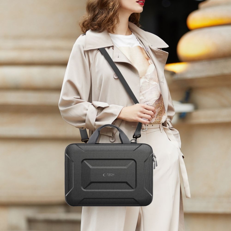 Ein zusätzlicher Vorteil ist der verstellbare Schultergurt und der robuste Handgriff, die ein bequemes und sicheres Tragen der Hülle unter allen Umständen ermöglichen.
