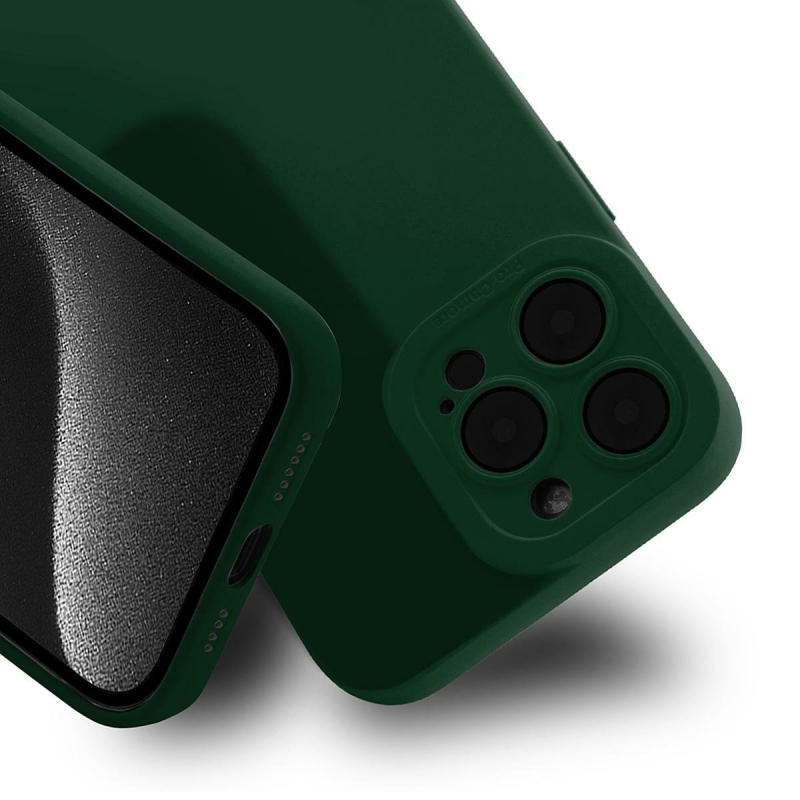 Schutzhülle mit metallisiertem Rahmen, mit integriertem Magneten für das Ladegerät und MagSafe-Zubehör.