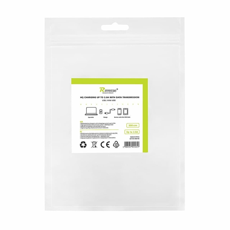 REVERSE USB/Mini Kabel 2A, 2m schwarz BAG