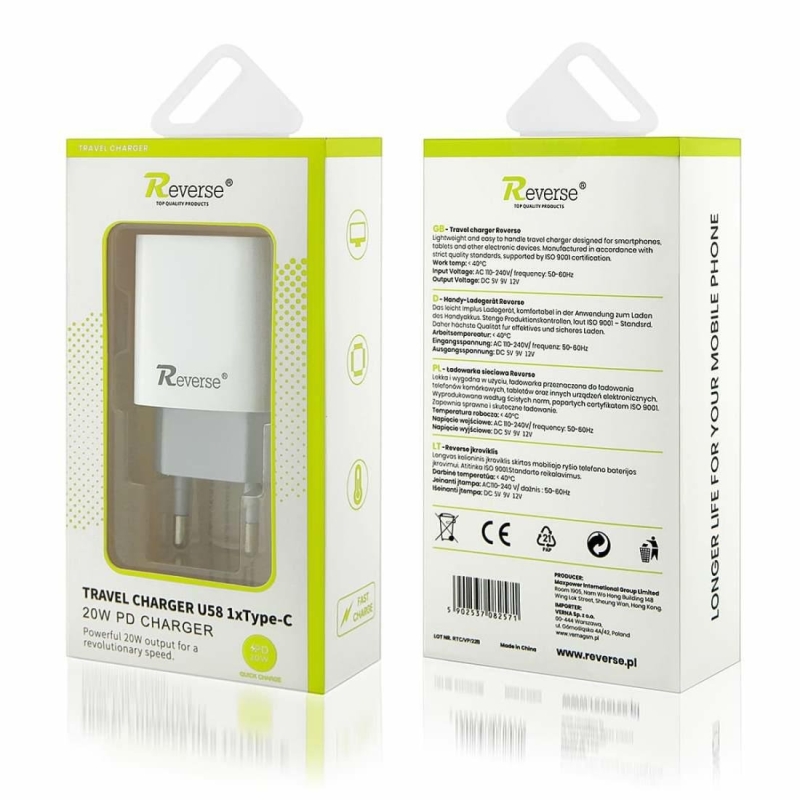 Netzteil REVERSE U58 1xType C 3A, 20W, Power Delivery weiß