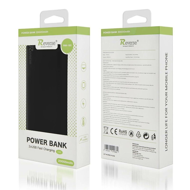 POWERBANK REVERSE PBR-183 20000 mAh SCHWARZ