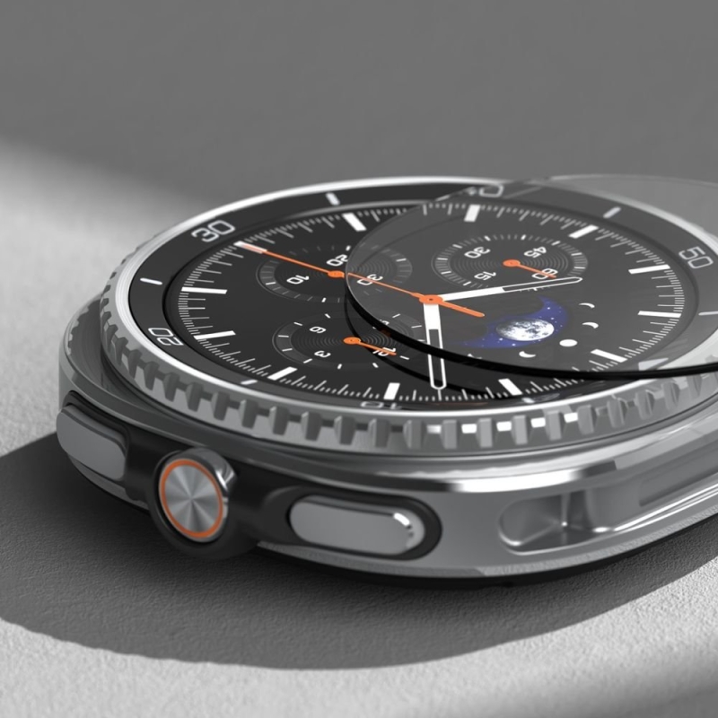 Das Ringke Tempered Glass Pro vereint Haltbarkeit, Komfort und Ästhetik und bietet vollständigen Bildschirmschutz bei gleichzeitiger Beibehaltung des eleganten Aussehens der Uhr.