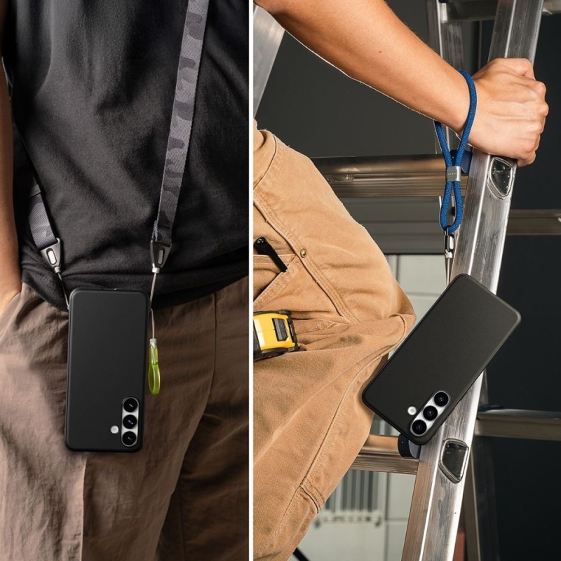 Das Onyx-Case von Ringke besteht aus weichem und strapazierfähigem thermoplastischem Material, das an den Kanten verstärkt ist, um das Gerät bestmöglich zu schützen. Die leicht erhöhte Form des Gehäuses um die Kamera und den Bildschirm schützt vor Kratzern, indem sie das Telefon knapp über der flachen Oberfläche anhebt. Es verfügt über Abdeckungen für die Tasten, Aussparungen für Anschlüsse und einen Anhänger.