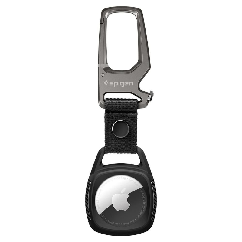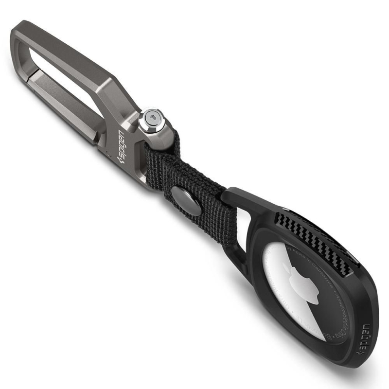 Rugged Armor, die Klassik von Spigen in neuer Ausführung, als Hülle für den Apple Air Tag. Der Schlüsselanhänger zeichnet sich durch hohe Haltbarkeit aus, die durch die Kombination von TPU-Hülle und Karabiner aus Edelstahl erreicht wird.