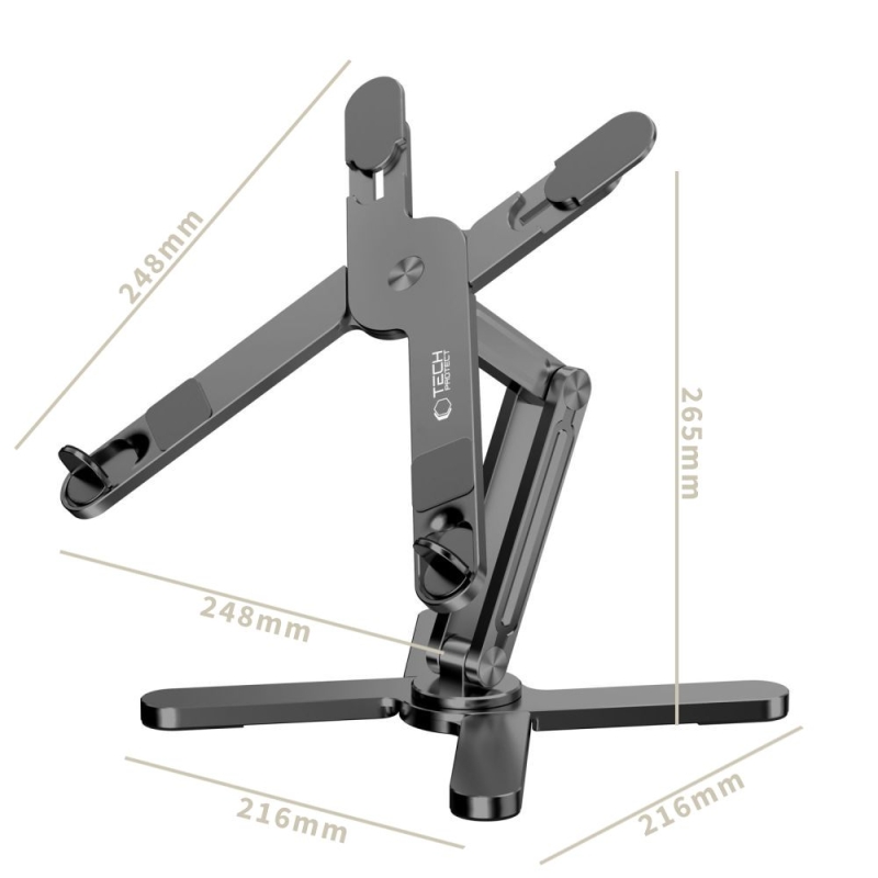 Der Tech-Protect ULS200 Ständer ist ein modernes, multifunktionales Schreibtischzubehör, das zur Unterstützung elektronischer Geräte wie Laptops entwickelt wurde. Er besteht aus hochwertigem Aluminium, was ihm Haltbarkeit und Stabilität verleiht. Er verfügt über verstellbare Arme, die an verschiedene Größen und Positionen der Geräte angepasst werden können.