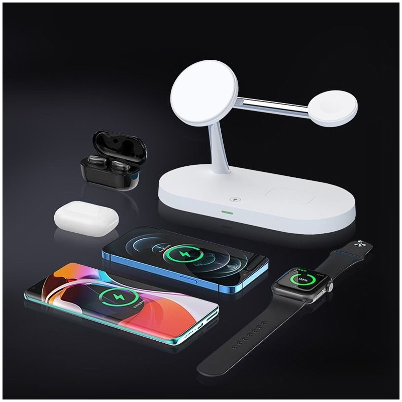 Der multifunktionale induktive Ladegerät von Tech-Protect ermöglicht das gleichzeitige oder vollständig getrennte Laden von drei Geräten - iPhone mit MagSafe-Funktion, AirPods und Apple Watch. Das einfache, aber funktionale Design mit mattem Finish verleiht ihm ein sehr ästhetisches Aussehen.