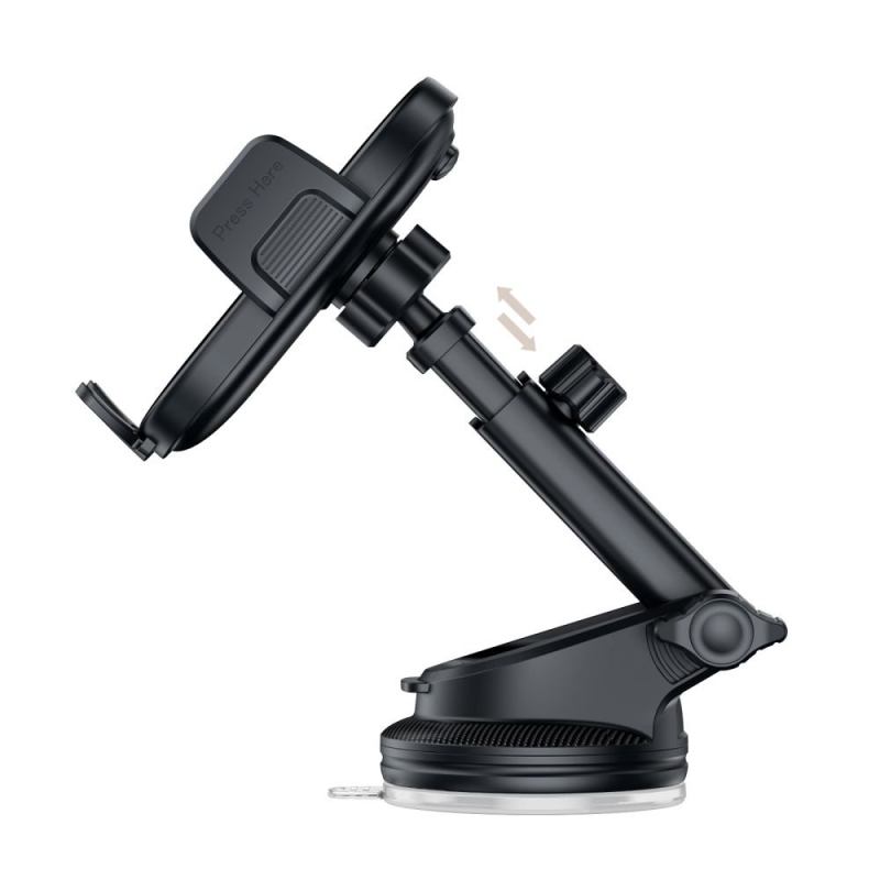 Die robuste Konstruktion sorgt für einen sicheren Halt des Telefons, selbst unter schwierigen Straßenbedingungen. Der drehbare Kopf ermöglicht eine flexible Drehung des Telefons, was den Komfort bei der Nutzung und die Anpassung des Blickwinkels an die eigenen Vorlieben erleichtert. Die Halterung ist mit einem teleskopischen Arm ausgestattet - die Anpassung des Abstands des Telefons zum Fahrer erhöht den Komfort und die Sicherheit bei der Nutzung der Navigation.