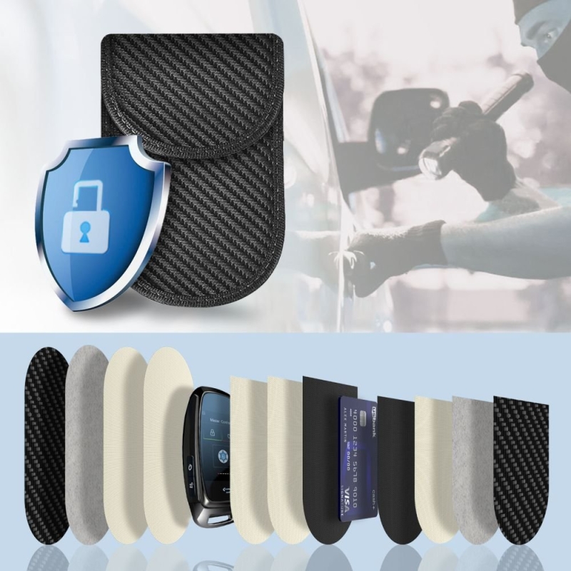 Im Inneren befindet sich eine doppelte Schutzschicht aus RF-Material, die effektiv RFID-, EMF-, Bluetooth-, Wi-Fi-, GPS- und andere Funksignale blockiert und vollständigen Schutz der Schlüssel vor dem Versuch, sie aus der Ferne zu kopieren oder auszulesen, bietet. So können Sie sicher sein, dass Ihr Auto selbst in der Nähe potenzieller Bedrohungen sicher bleibt.