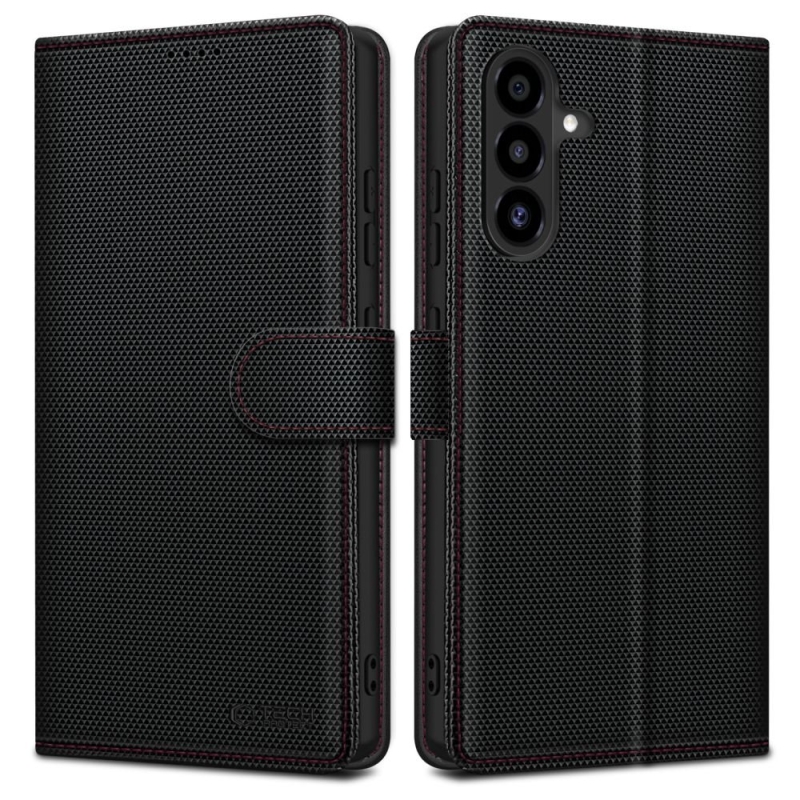 Das Tech-Protect Wallet RS ist eine elegante und langlebige Hülle, die klassischen Stil mit originellem Design verbindet. Es zeichnet sich durch eine raue Oberfläche aus, die einen sicheren Halt bietet, sowie durch eine stilvolle rote Naht, die ihm Charakter verleiht.