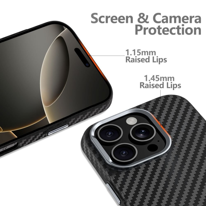 Hergestellt aus strapazierfähigem Polycarbonat (PC), bietet das Case effektiven Schutz vor Kratzern, Stößen und täglichem Verschleiß. Die karbonartige Oberfläche verleiht ihm einen einzigartigen Charakter und unterstreicht das dynamische und stilvolle Aussehen.