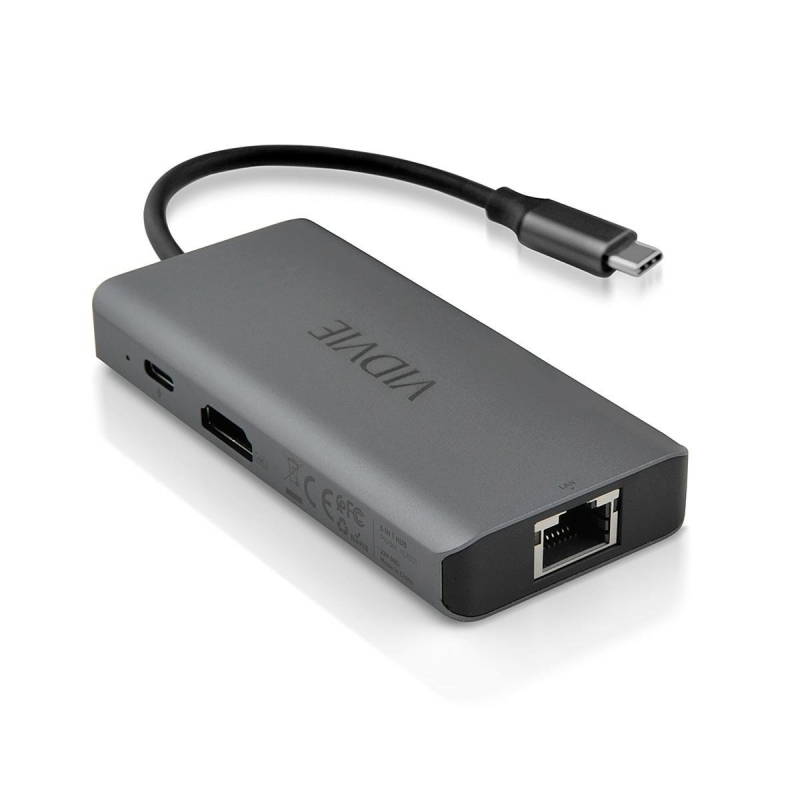 Adapter HUB VIDVIE HUB01 1xUSB 3.0+2xUSB 2.0+1xHDMI+1xRJ45+1xPD+Type C grau