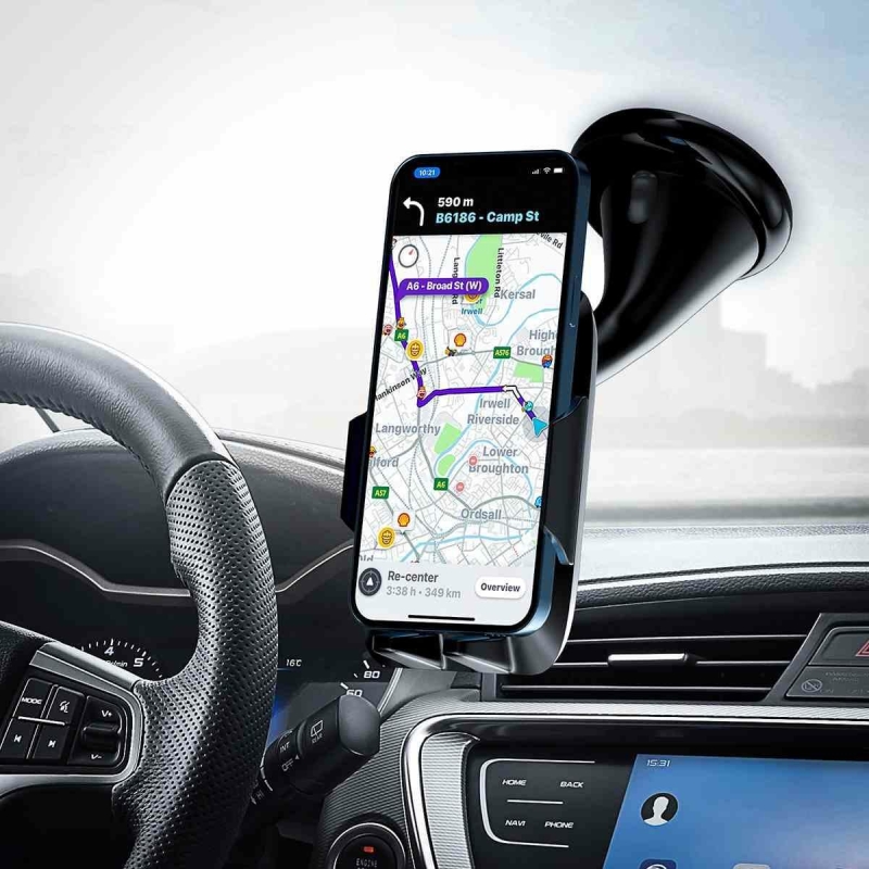 Auto-Halterung für Telefone zur Montage an der Windschutzscheibe.