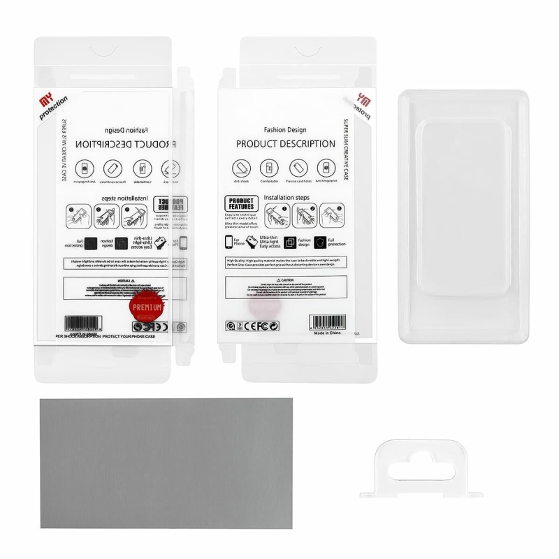 Das Set enthält: Verpackung, Einlage für das Etui, silberne Abdeckeinlage und einen Kunststoffanhänger.