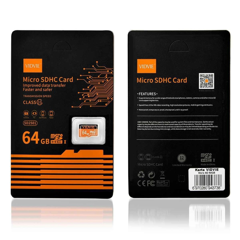 VIDVIE MICRO SDHC 64 GB Speicherkarte schwarz