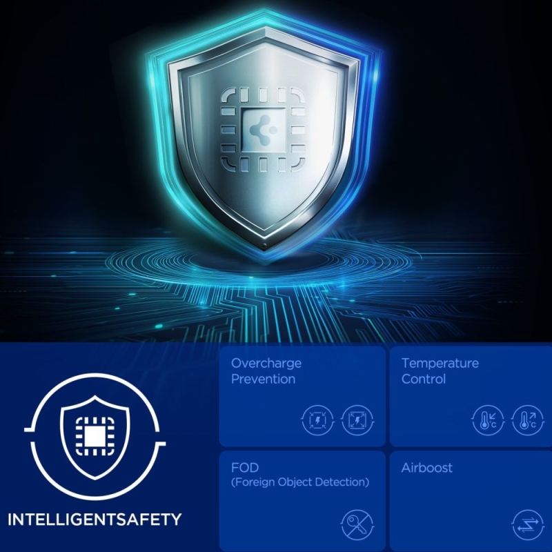 Dank der aktiven Peltier-Kühlung mit AirBoost-Funktion überwacht der Halter die Temperatur des Telefons und sorgt für stabiles und schnelles Laden, selbst auf langen Fahrten und bei hohen Temperaturen. Das FOD-System (Foreign Object Detection) erkennt die Anwesenheit von metallischen oder unerwünschten Objekten im Ladebereich, und die Überladungsschutzfunktion schützt den Akku des Telefons vor Überladung, was die Sicherheit und Lebensdauer des Geräts erhöht.