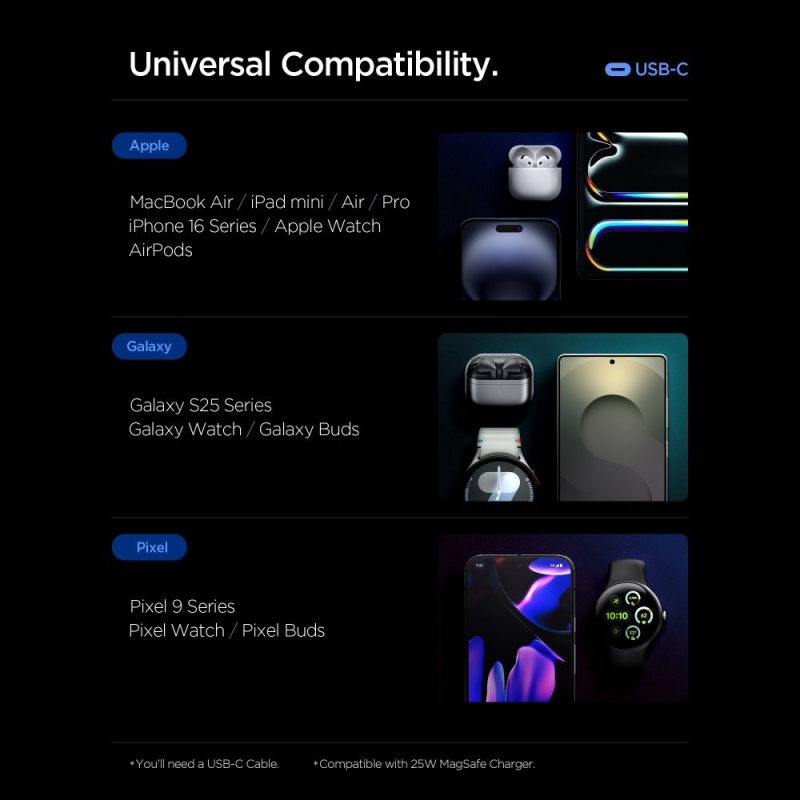 Das kleine, kompakte Design macht das Spigen EE472EU leicht tragbar – ideal für zu Hause, im Büro oder auf Reisen. Es ist eine praktische und zuverlässige Lösung für Personen, die eine schnelle, intelligente und sichere Energiequelle für ihre Geräte benötigen, ohne Kompromisse bei Komfort und Effizienz einzugehen.