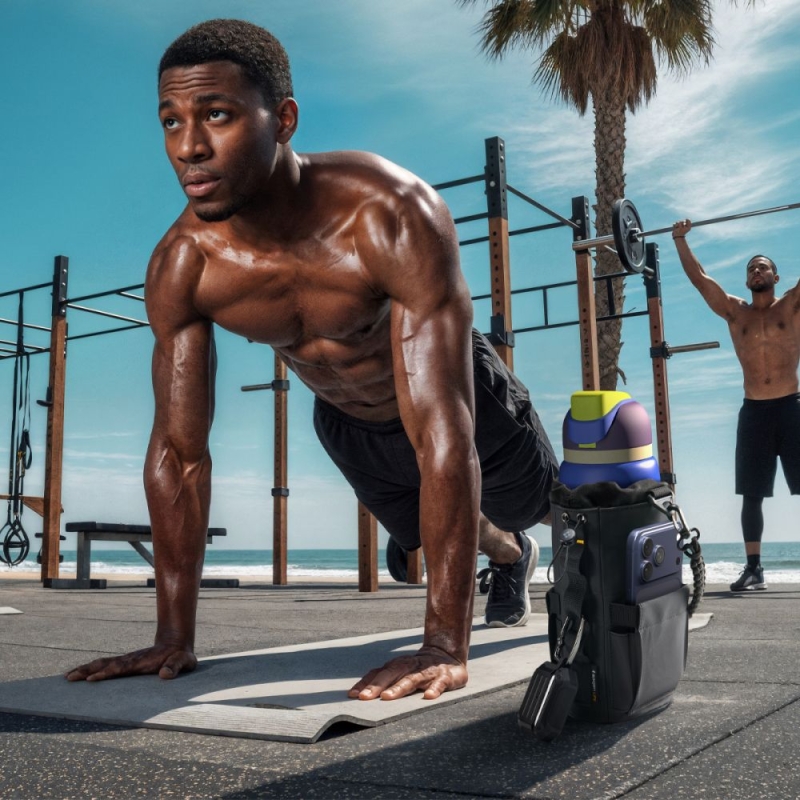 Die universelle Größe passt für Flaschen mit einem Volumen von 590-1180 ml, Proteinshaker und verschiedene andere Getränkebehälter. Der verstellbare Kordelzug verhindert das Verrutschen der Flasche und passt sich ihrer Größe an. Zwei seitliche Taschen schützen das Telefon und bieten Platz für Snacks oder kleine Zubehörteile, die beim Sport benötigt werden. Ein bequemer Handgurt erleichtert das Tragen, und drei äußere Schlaufen ermöglichen das Anbringen von Karabinerhaken, Schlüsselanhängern oder anderen Gadgets.