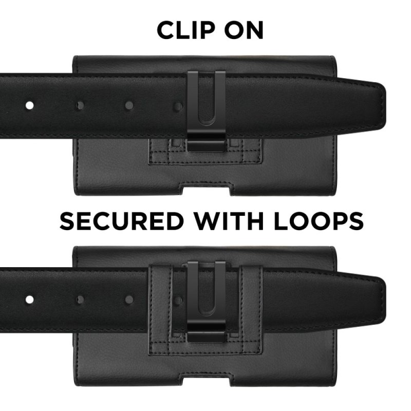 Dla wygody użytkowania pokrowiec wyposażono w trwały klips do paska oraz dwie dodatkowe szlufki, które gwarantują stabilne i bezpieczne mocowanie – niezależnie od tego, czy jesteś w pracy, w podróży, czy na spacerze. Klips jest solidny i nieruchomy, dzięki czemu pewnie trzyma się paska, a magnetyczne zapięcie z przodu zapobiega przypadkowemu otwarciu etui.