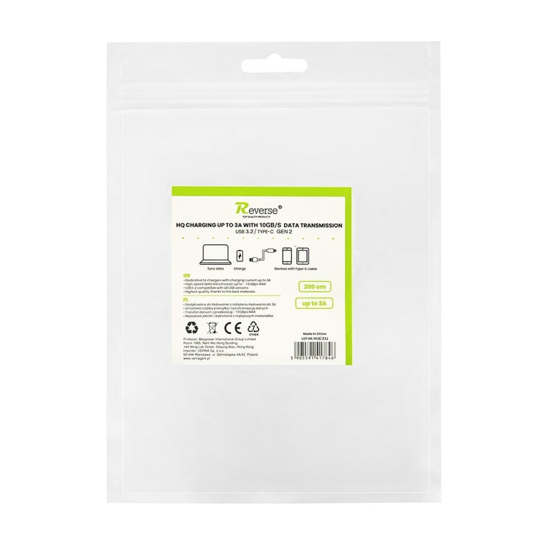 REVERSE USB CABLE – TYPE C 2M USB 3.2 GEN 2 BLACK BAG