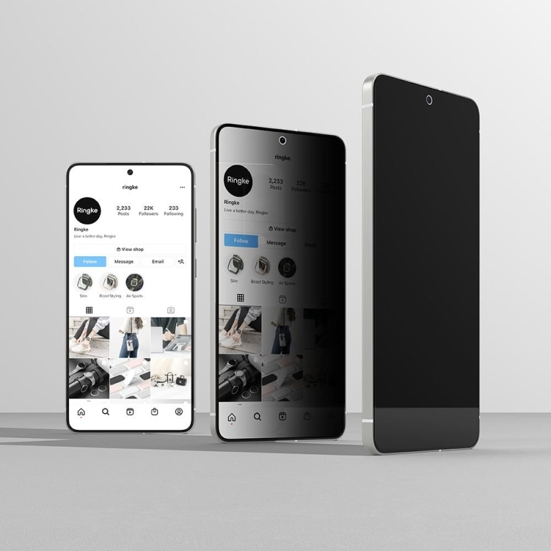 High-quality Ringke Easy Slide tempered glass with a protective filter function is the ideal way to protect the screen from damage while also limiting its visibility to bystanders. The polarizing filter reduces screen visibility at an angle of 28°, and completely reduces it at an angle of 40°.