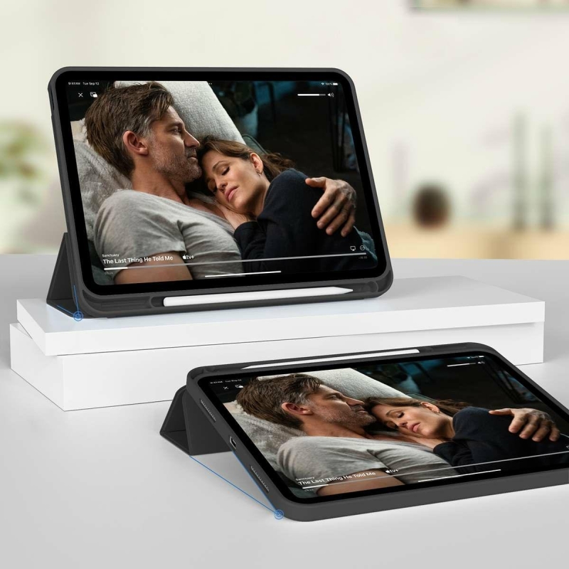 Thanks to the use of a cover with the function of waking up and putting the device to sleep, we gain excellent protection and longer battery life.