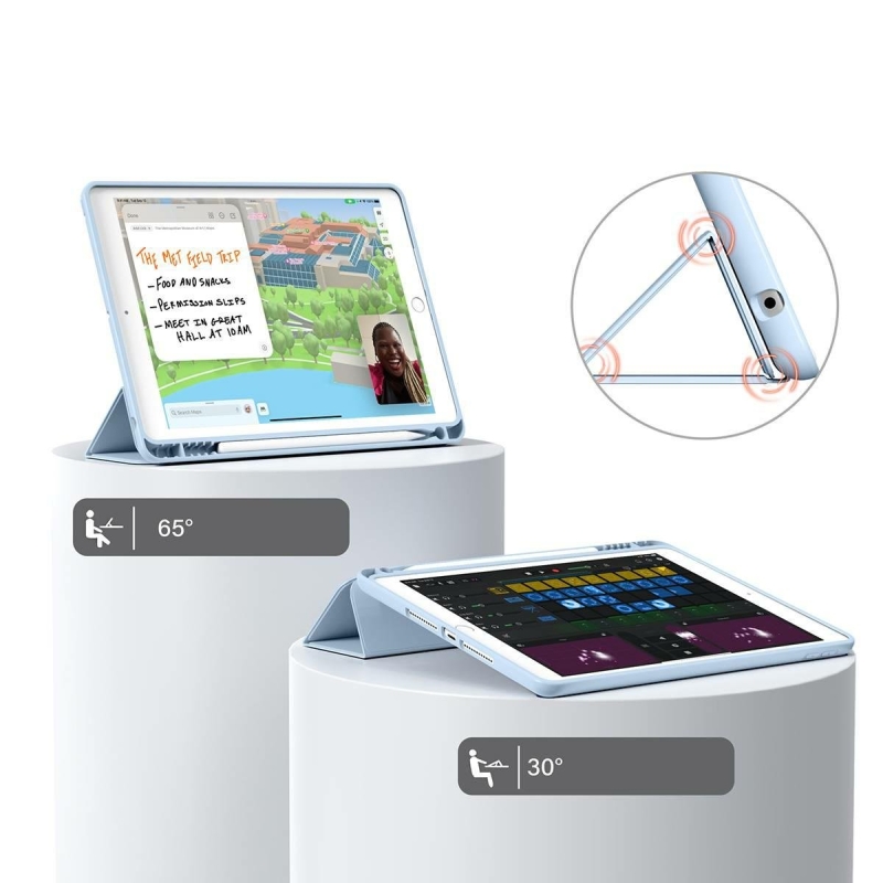 The iPad cover, made of high-quality silicone, protects the device from all sides.
