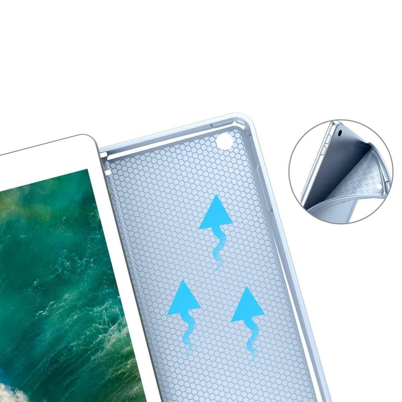 The iPad cover, made of high-quality plastic, protects the device from all sides.