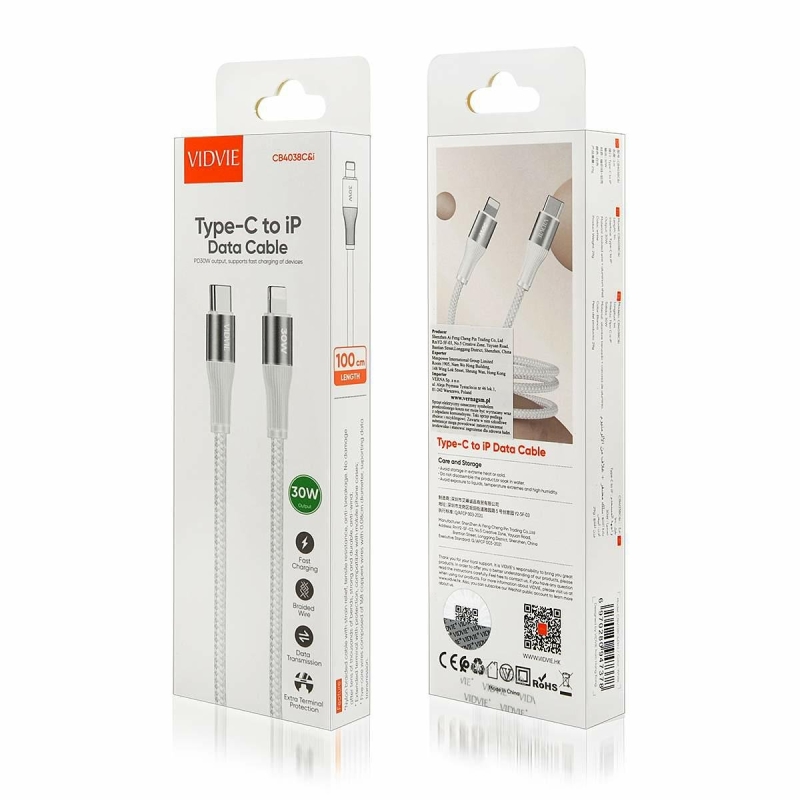 VIDVIE CB4038 TYPE-C/IPHONE PD CABLE 30W WHITE