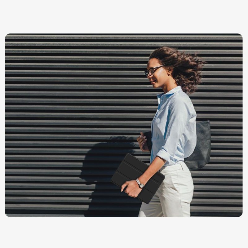 Dzięki zastosowaniu harmonijkowej osłony na przedniej stronie pokrowca, zyskujemy ochronę wyświetlacza, a dzięki technologii wybudzania i usypiania urządzenia, możemy zapewnić nieco dłuższą żywotność jego baterii. Case może służyć również za podstawkę do wygodniejszego korzystania z urządzenia.