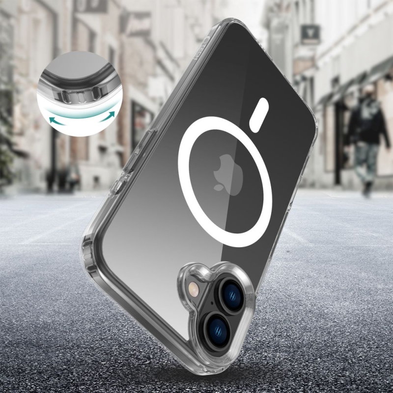 Klasyczny, jednoczęściowy case Flexair Hybrid Magsafe od Tech-Protect o przezroczystym wykończeniu, stworzony z myślą o podkreśleniu linii i oryginalnej sylwetki urządzenia.