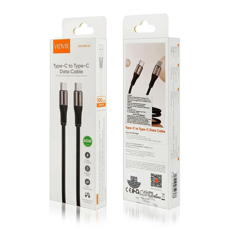 KABEL VIDVIE CB4038 TYPE-C/TYPE-C PD 60W CZARNY