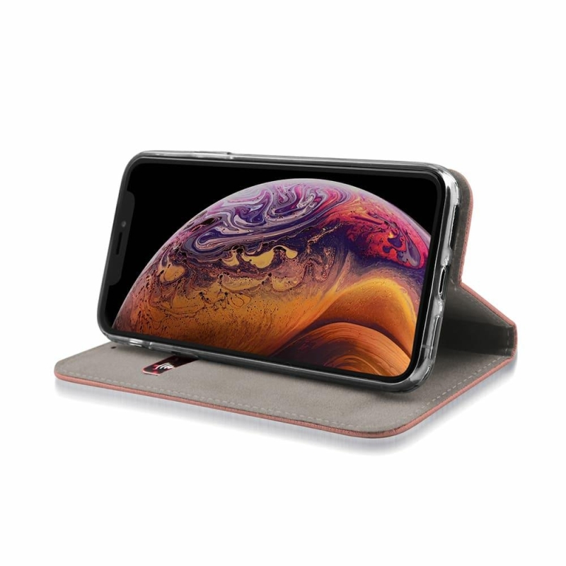 Kabura pionowa z otwieraną na bok klapką, chroni telefon przed zarysowaniem i sprawia, że będzie bezpieczniejszy podczas upadku.